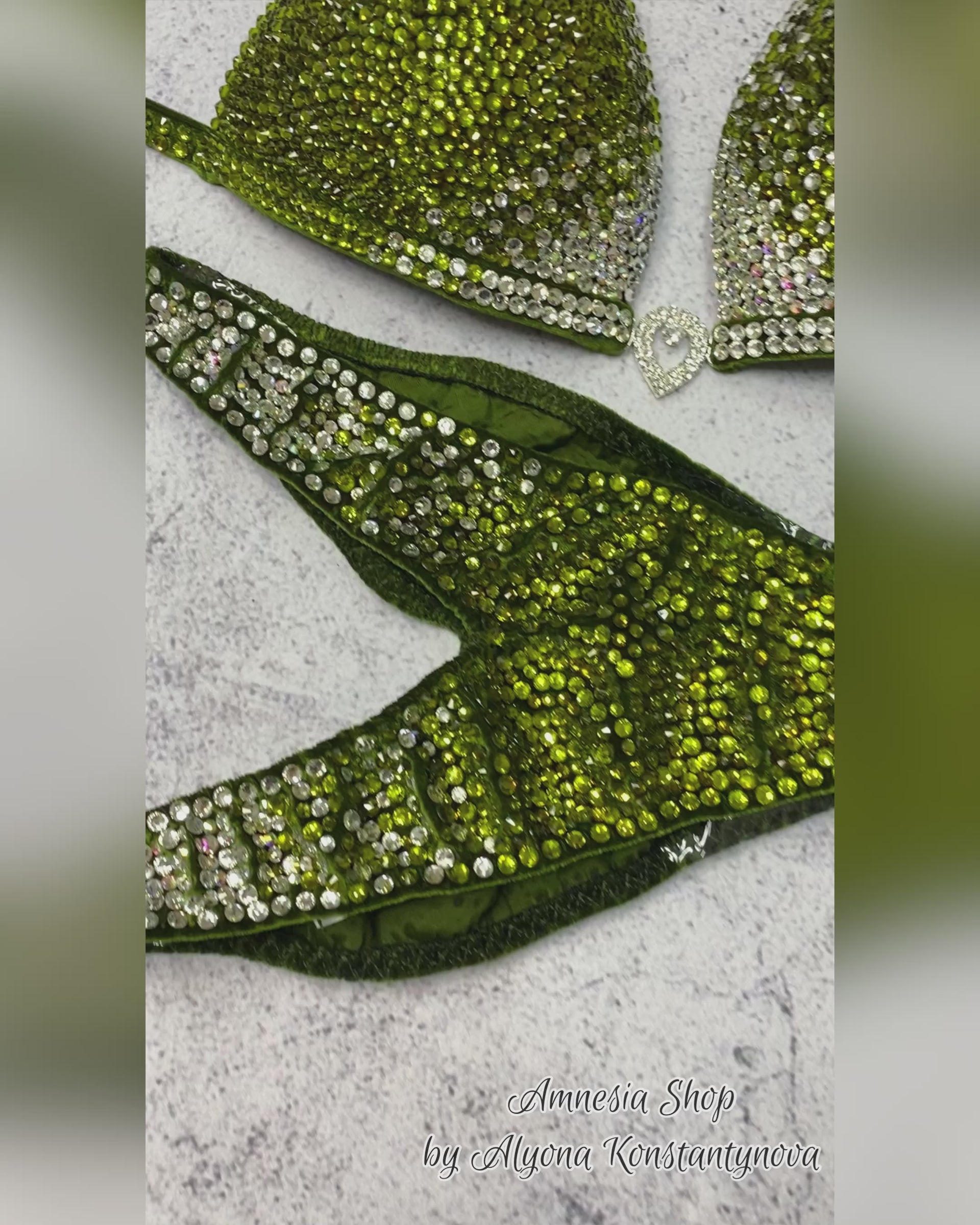 (Copy) Olive Silver Fitness Bikini - Competition Bikini Set - Figure Fitness - NPC - IFBB - Velvet Figure Competition Suit - Posing Suit - Wellness Bikini