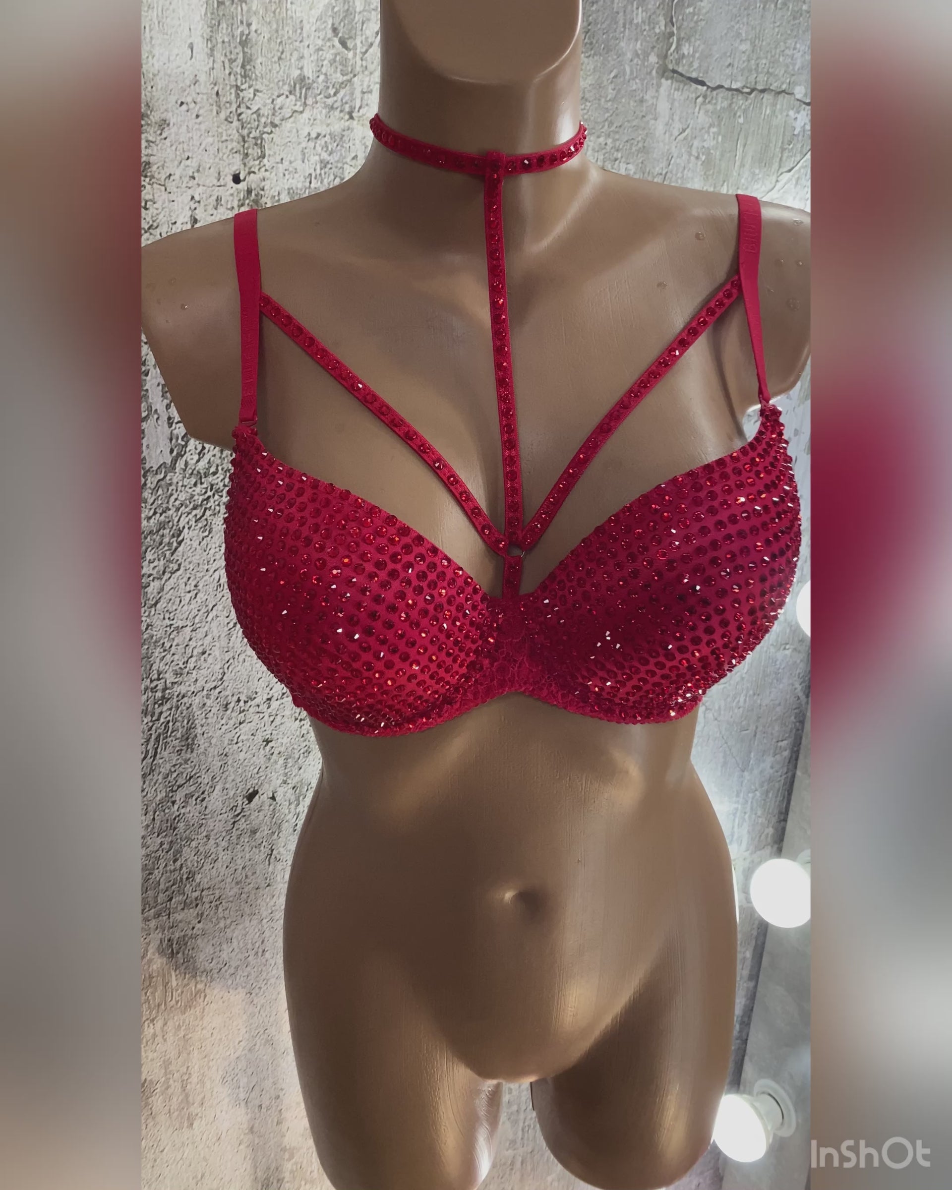 Sexy Bra, Rhinestones Bra, Red Bra, Rave Bra, Disco Bra, EDC, Luxury, Sexy Women Bra, Bustier Bra, Stripper Party Night Club, Custom Bra