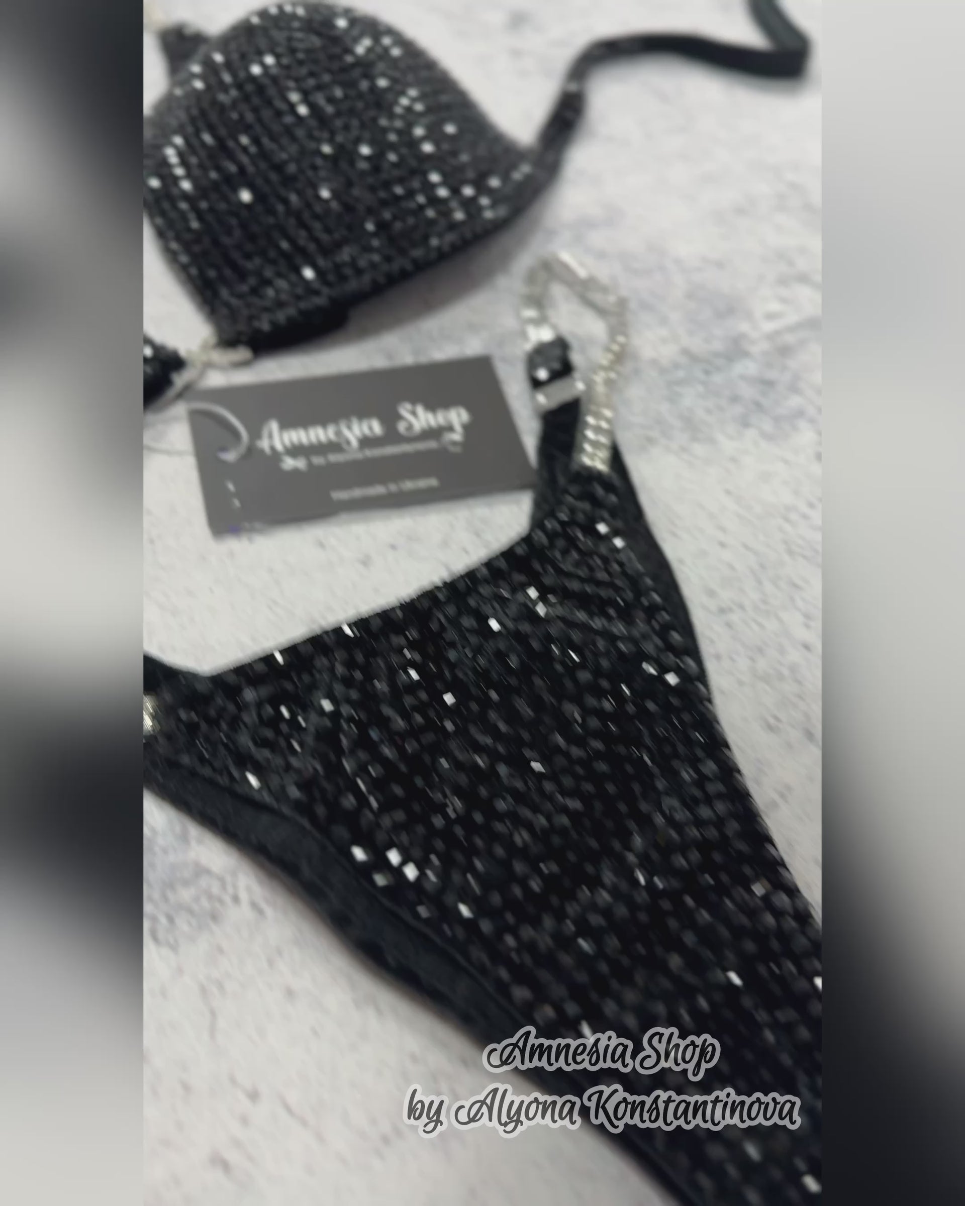 Black Competition Bikini Set - Rhinestone Fitness - NPC Bikini Suit - IFBB - Figure Competition Suit - Posing Suit - Swarovski Bodybuilding